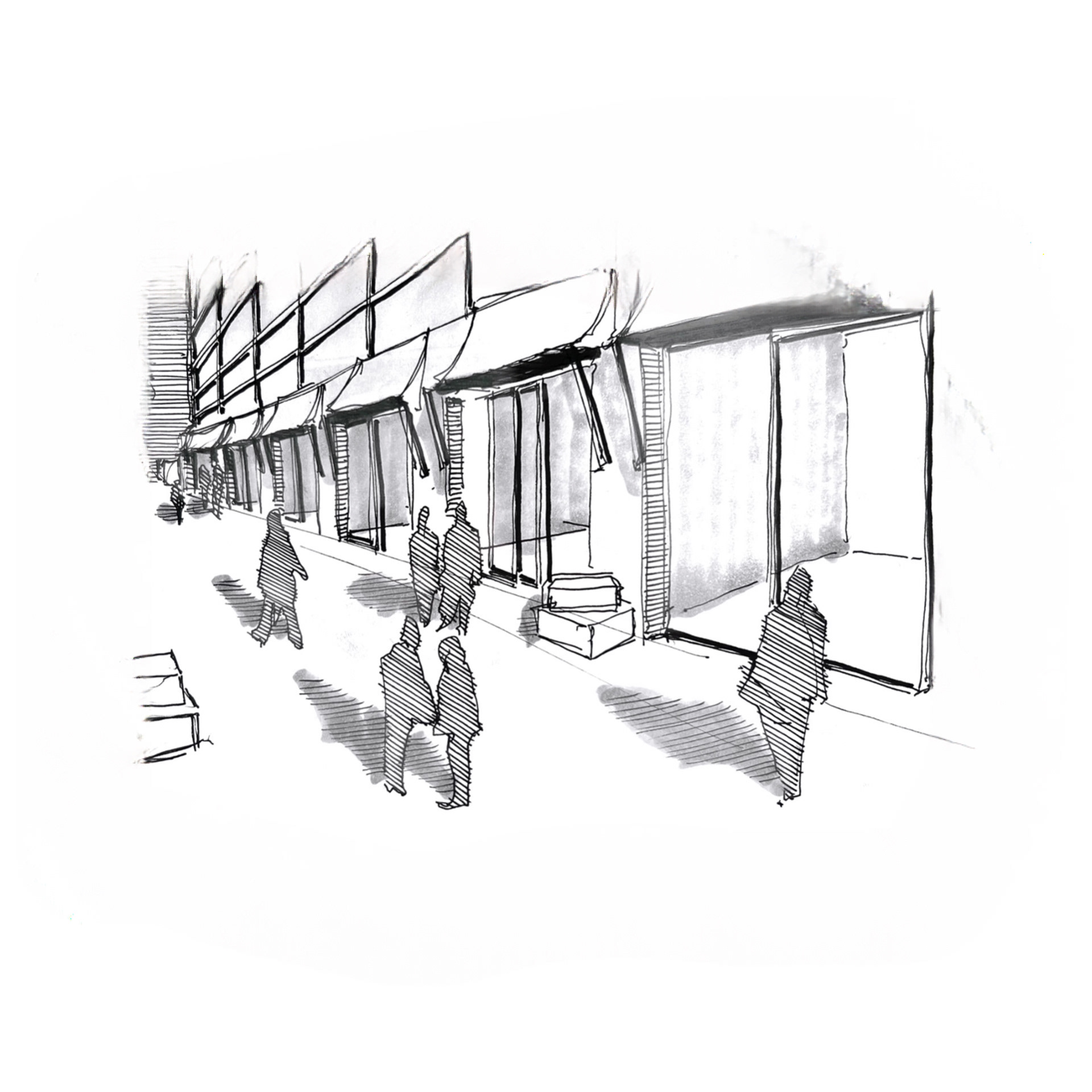 The housing component of the Sai Wan Shan project is designed with a focus on individuality, sustainability, and community integration. The three four-floor residential buildings, crafted from modular bedrooms and bathrooms, are arranged to offer a unique living experience for each resident, with no two apartments being identical. This approach to modular design not only maximizes space efficiency but also fosters a sense of personal identity and ownership among the inhabitants. The buildings' long, rectangular forms are punctuated by strategically placed openings that allow for natural air circulation, enhancing indoor air quality and reducing the need for mechanical ventilation. These architectural elements contribute to the overall sustainability of the project, aligning with the goal of creating an environmentally conscious urban space. Additionally, the residential structures are interconnected by sky bridges, providing residents with easy access to the community center, clinic satellite, and other amenities. This interconnectedness promotes a sense of belonging and encourages interaction among residents, reinforcing the cooperative nature of the city.